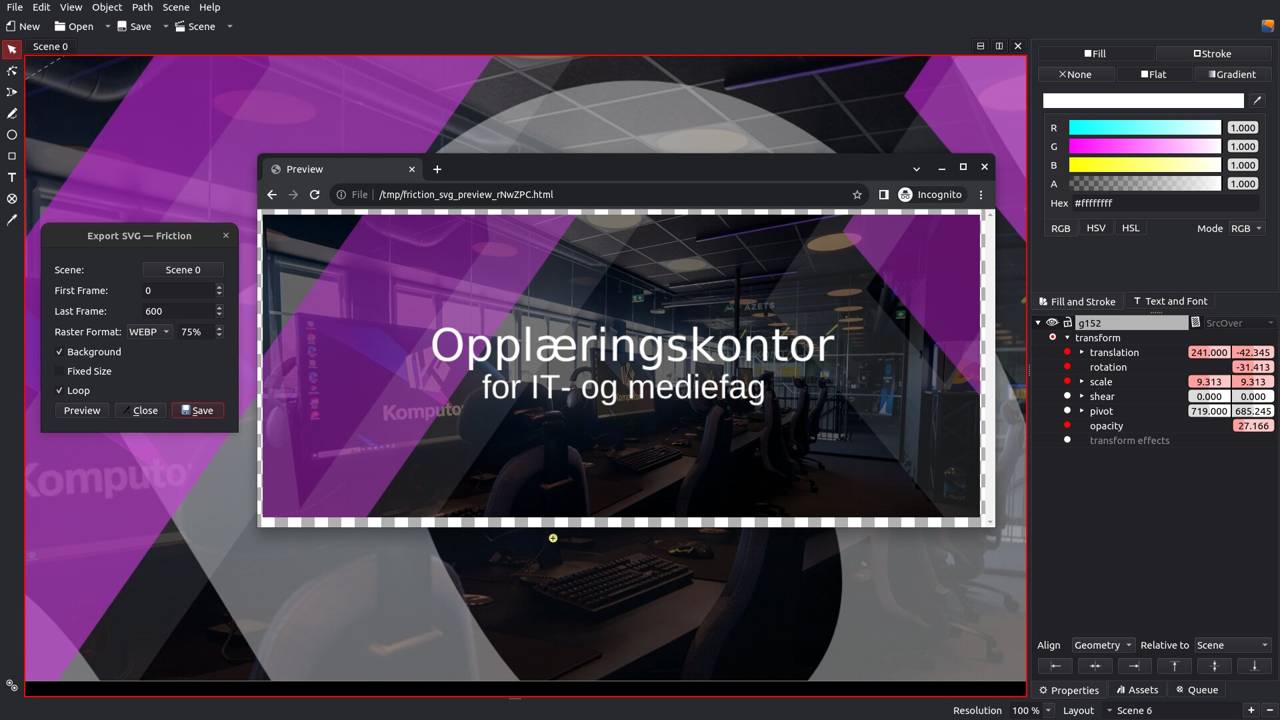 Friction is an open source motion graphics and vector animation tool that lets you create smooth and responsive animations for the web and for video.