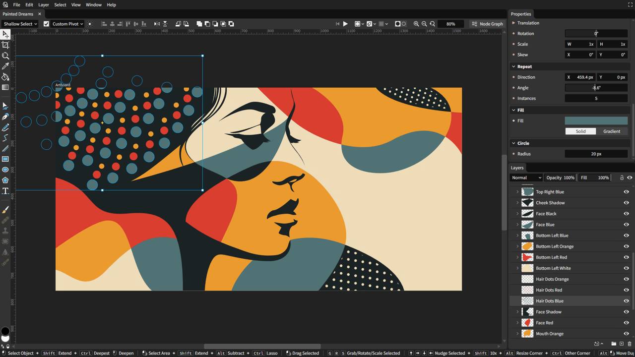 - Explore parametric possibilities. Save hours on tedious alterations and make better creative choices. Graphite lets you iterate rapidly by adjusting node parameters instead of individual elements. Scatter circles with just a couple nodes…Want them denser? Bigger? Those are sliders. Want a different placement area? Just tweak the path.